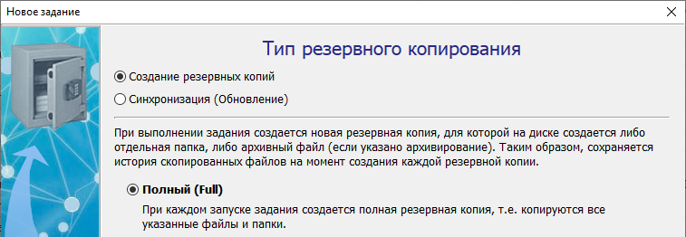 Укажите тип – "Создание резервных копий – Полный (Full)”