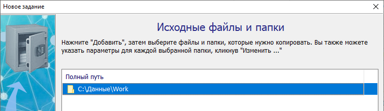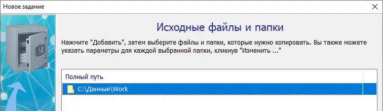 Нажмите "Добавить" и выберите пункт "Локальные/сетевые файлы и папки". К примеру, выберем папку "C:\Данные\Work".