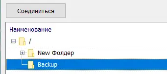 После соединения с Облаком Mail выбираем папку в облаке, куда будут сохраняться резервные копии. В нашем случае это папка "/Backup"
