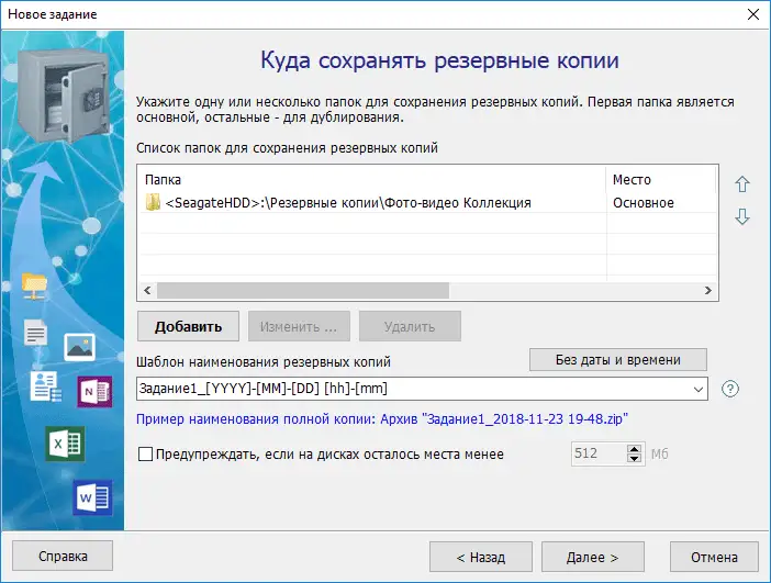 Нажимайте "Далее", чтобы пройти все оставшиеся шаги мастера. Расписание запуска можно не задавать, а запускать задание вручную, когда вы подключите внешний HDD или SSD.